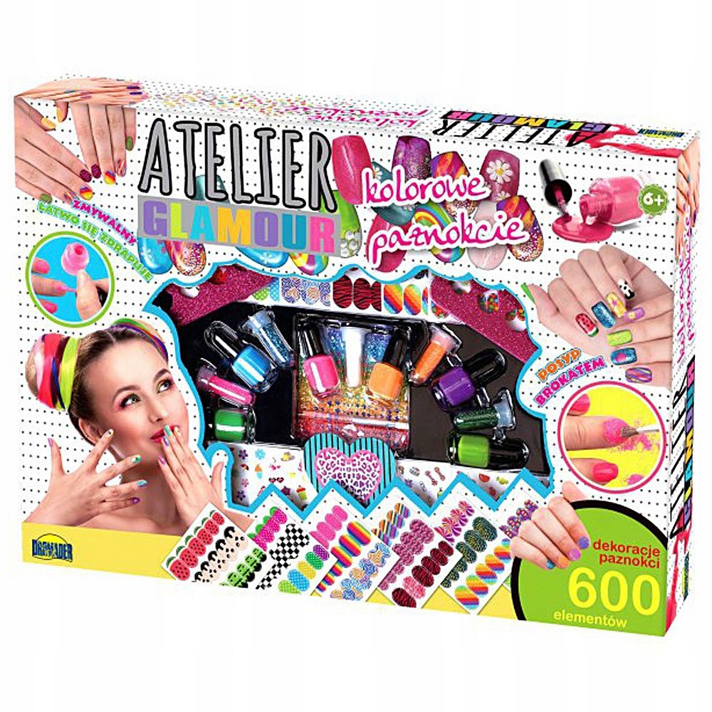 Це було створено для дівчат, які люблять грати з косметикою. У коробці понад 600 елементів, включаючи лаки для нігтів, блискучий блиск та наклейки на нігтів. Також можуть бути професійні інструменти. Все це дозволить дівчатам створювати унікальні проекти з прикраси, а також розвивати ручні навички та стимулювати уяву та творчість.