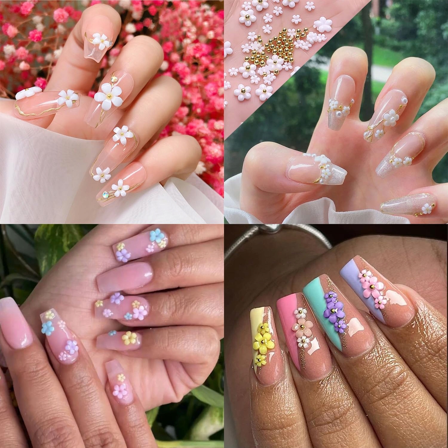 ✨ Є квіти в різних розмірах і відтінках. Крім того, до кожного відсіку додаються невеликі намистини або перли, що додасть ваш нігті тривимірний, художній вигляд.