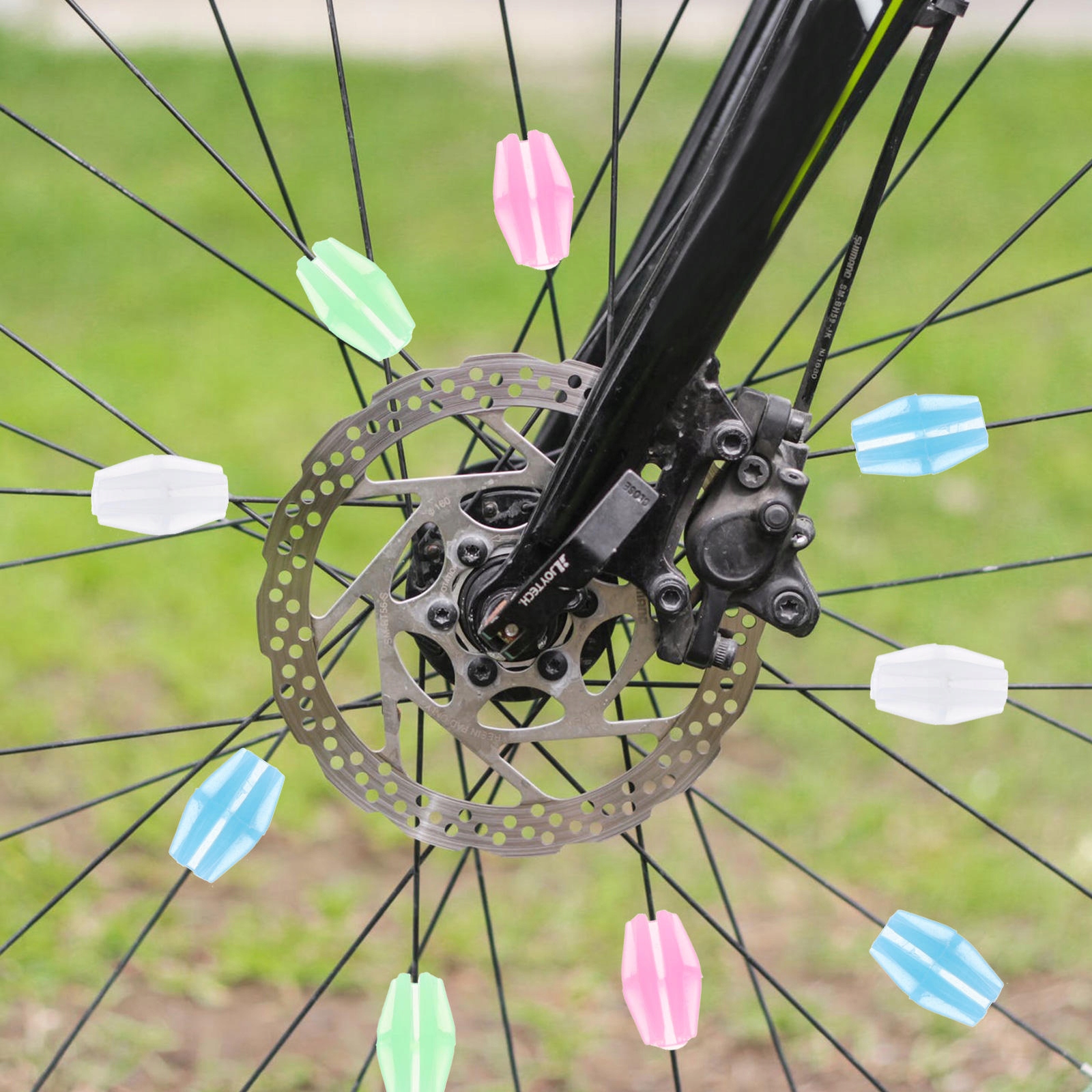 ✅ten Продукт використовується для прикраси колеса за допомогою його встановленого на спицях. Вони поставляються в багатьох різних кольорах і легко встановити будь -які, просто вирізаючи їх. Барвисті пластикові намистини для розмови і вниз, коли велосипед рухається. Вони виглядають дуже круто і створюють.