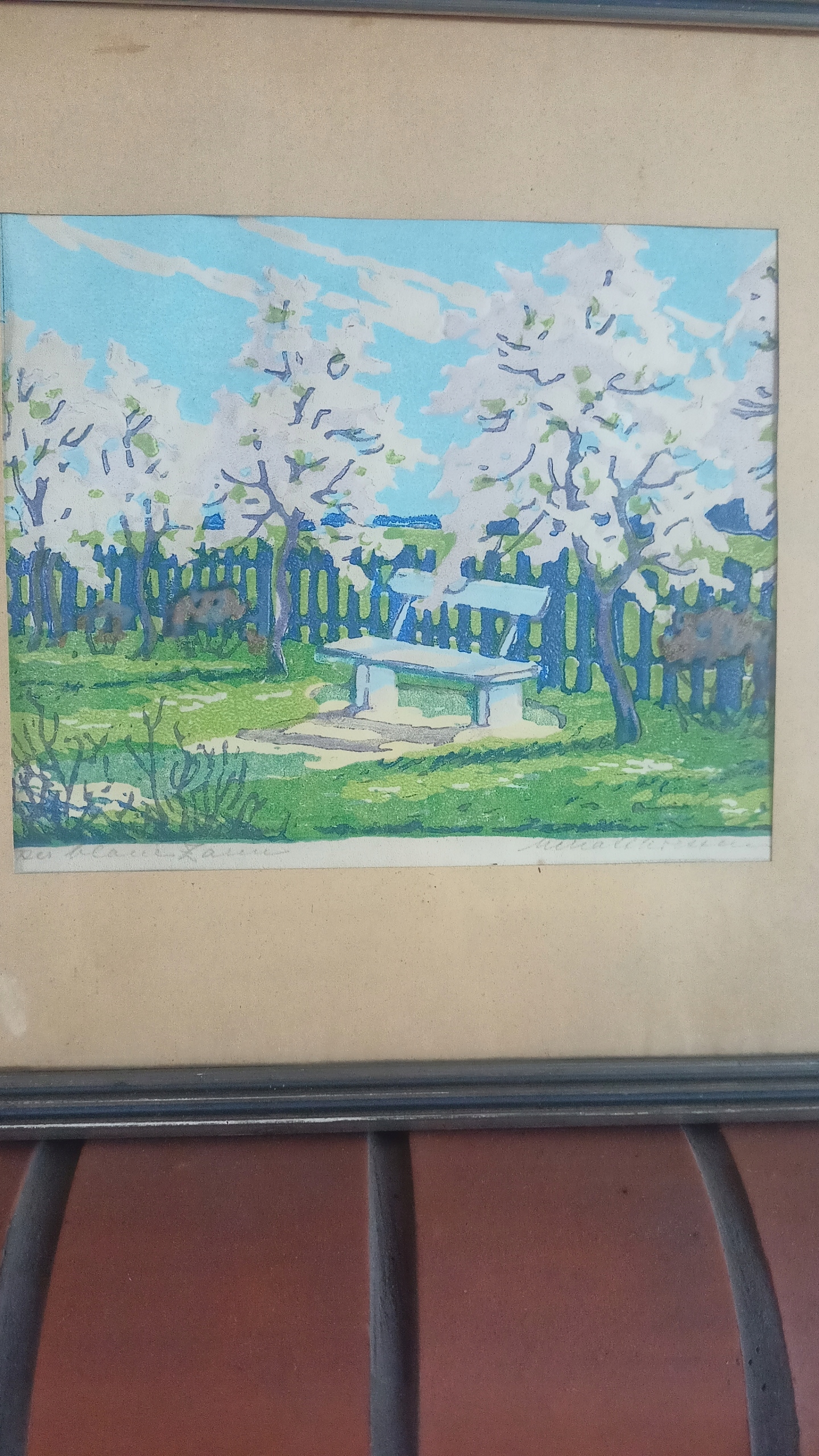 Барвистий дрова "Синій паркан" Автор Маттії, коли близько 1920 року
