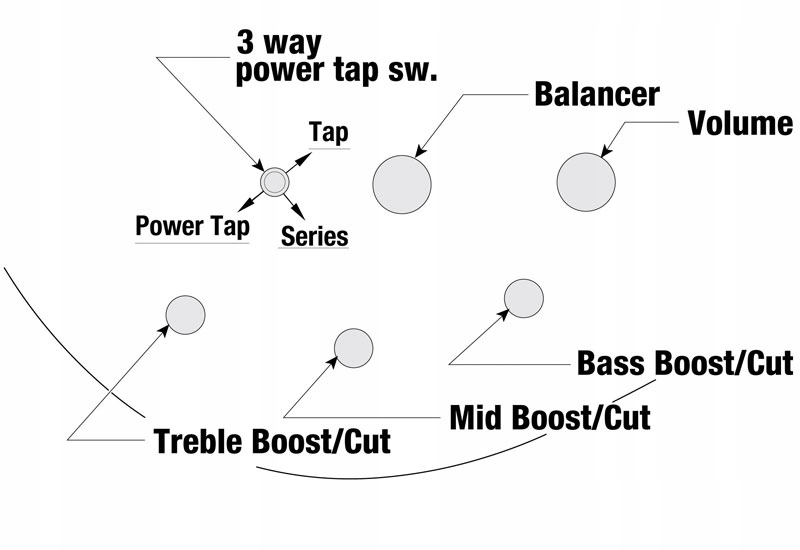 - Електроніка: 3-смуговий еквалайзер Ibanez Custom Electronics з 3-позиційним перемикачем Power Tap