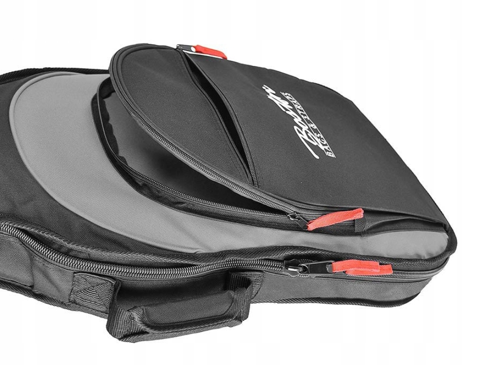 Висококласний футляр для бас-гітари. Він виготовлений з міцного нейлону, має підкладку товщиною 15 мм, міцні блискавки і 2 містких відділення для аксесуарів, планшета або нот. Два плечові ремені та ручка м’які для більшого комфорту при носінні.