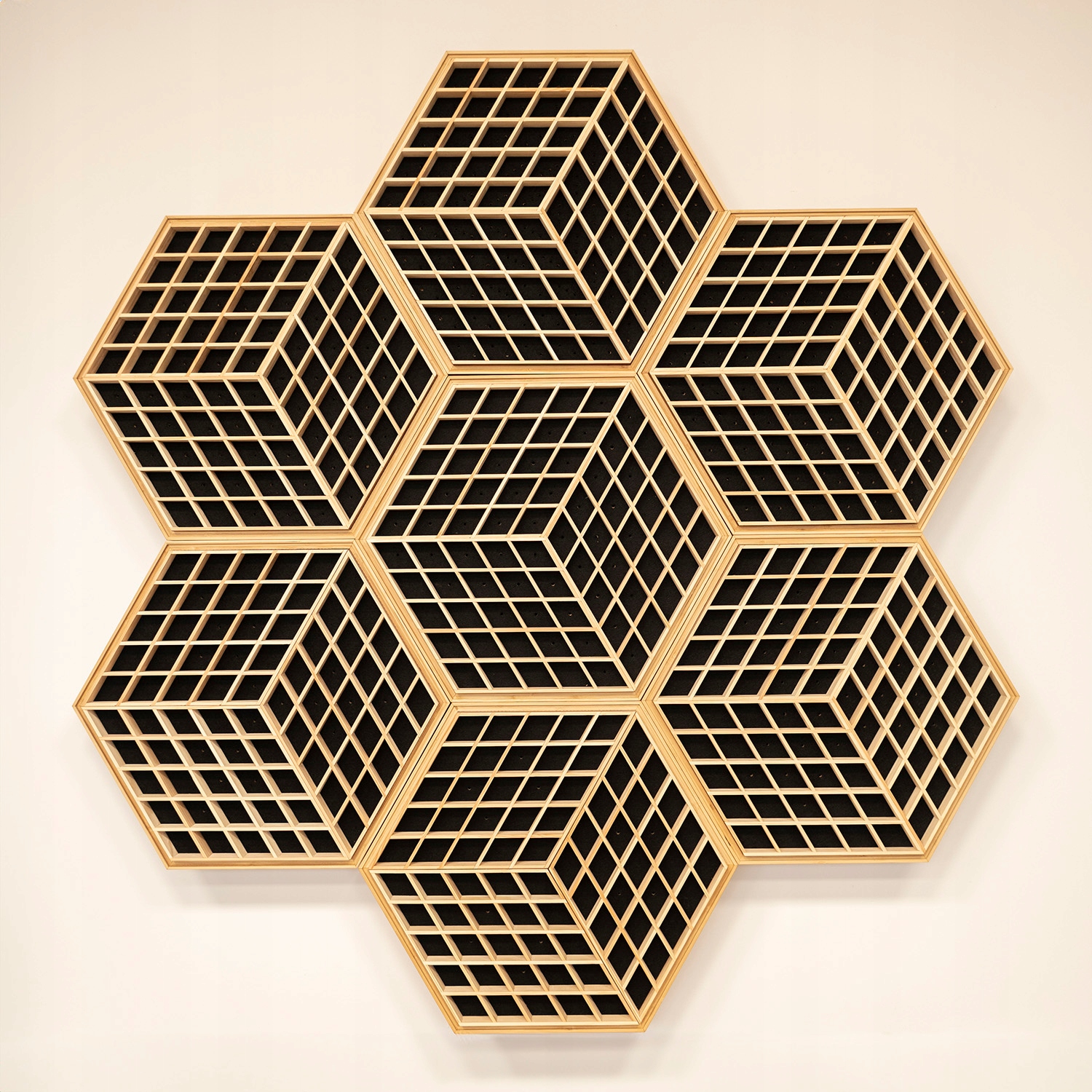 Форма і стиль наших панелей також покликані служити матеріалом для декорування інтер'єру. Смуги розсіювача розташовані таким чином, що створюють 3D оптичну ілюзію куба, що виступає з поверхні стіни. Форма правильних шестикутників дозволяє створювати різноманітні прикраси у вигляді сот. Крім того, наші панелі можна розглядати як акустичні та декоративні блоки та використовувати в різних конфігураціях для досягнення бажаного ефекту в інтер’єрі.