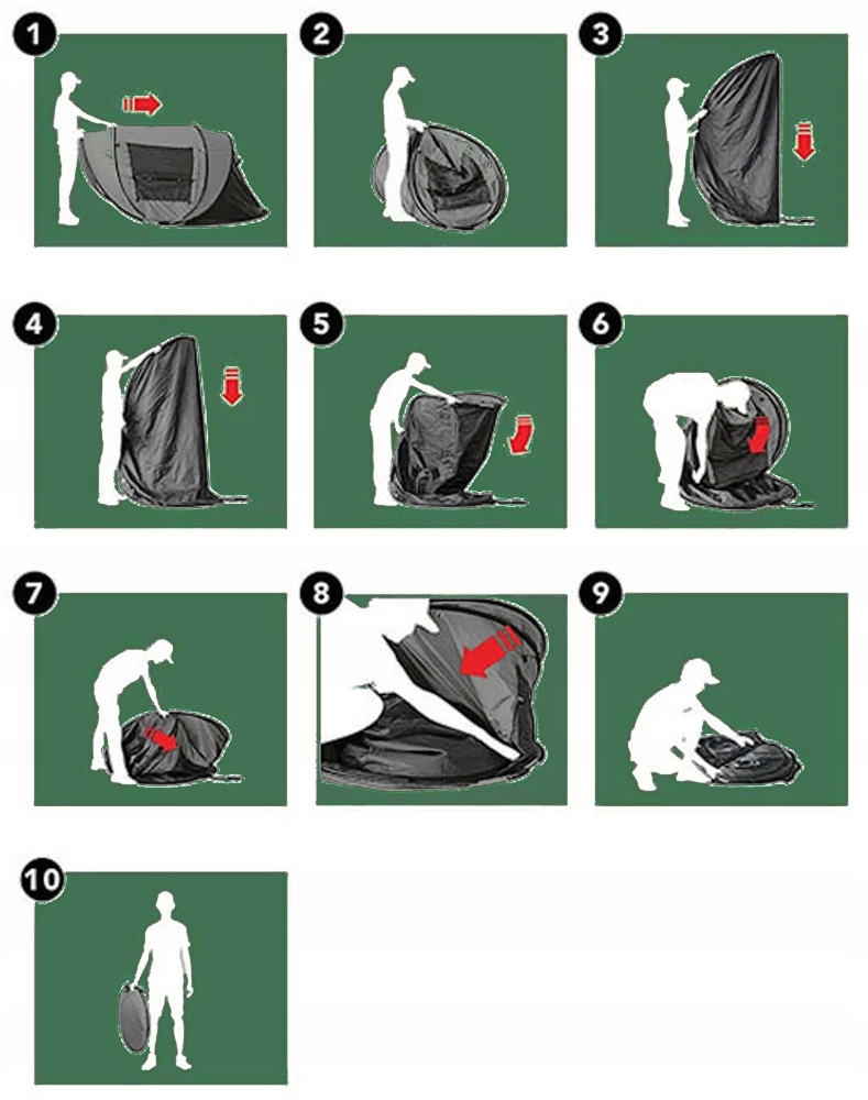 - Зручність і швидкість - намет розкладається сам миттєво, заощаджуючи ваш дорогоцінний час і енергію.