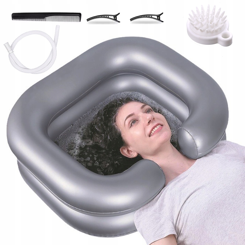 ✅✅nadmuchiwana umywalka do mycia włosów rozwiązuje trudności związane z myciem włosów przenośnym szamponem, mycie włosó na łóżku jest łatwe i i wygodne. Він дуже підходить для дітей, людей похилого віку тощо. Це не тільки полегшує миття волосся людям у поганому стані або після операції, але, перш за все, змушує їх почувати себе дуже комфортно. Срібний колір легко зберегти чистий і на відміну від білих умивальників, не всі вони матимуть бруд/плями.