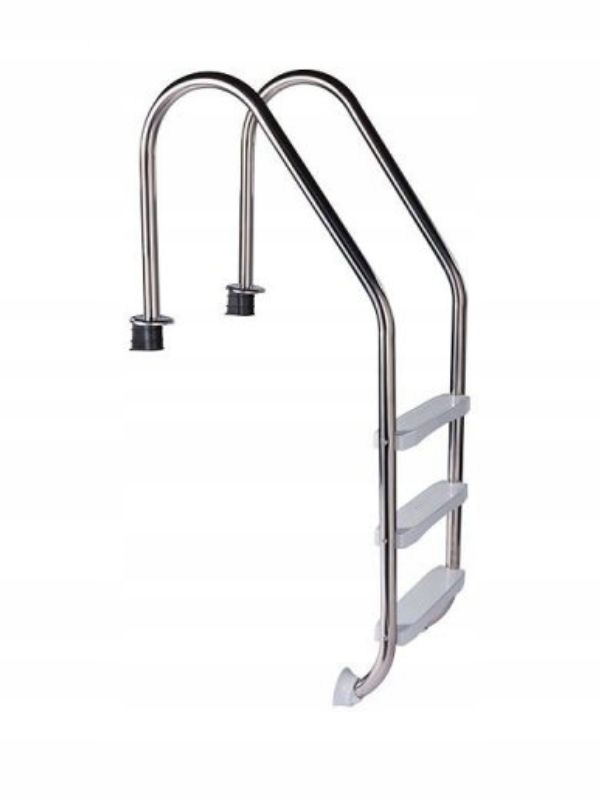 Конструкція виготовлена з нержавіючої сталі та має міцні пластикові кінці, які захищають стінку басейну від можливих пошкоджень. Сходинки виготовлені із загартованого пластику та додатково оснащені штампованими протиковзкими сходинками для безпечного входу. Додатково драбина оснащена анкерамидля бетонування, що значно полегшує установку драбини на землю та подальшу експлуатацію.