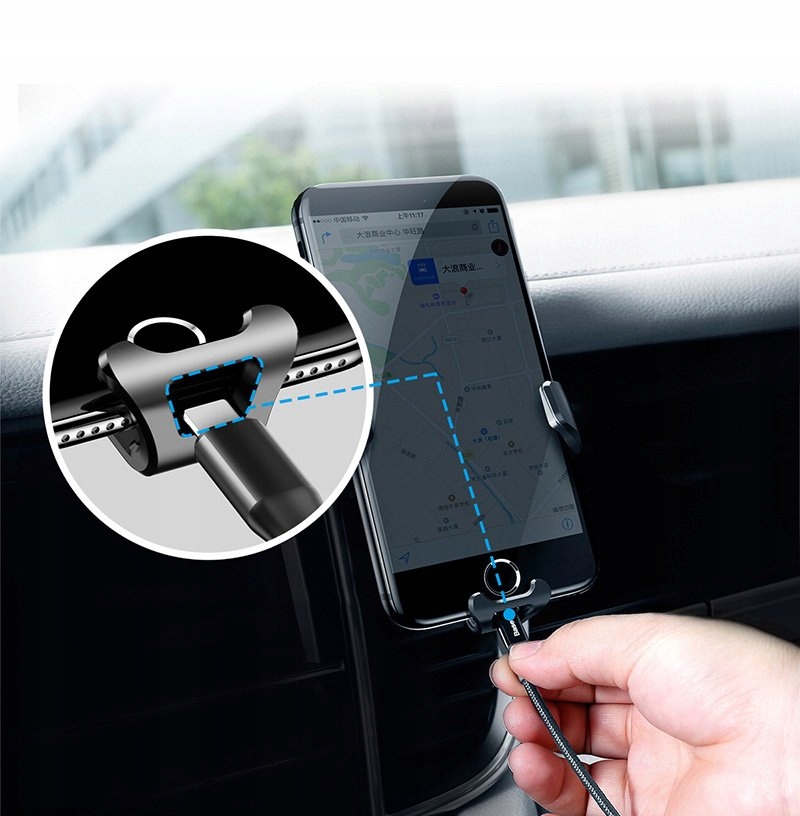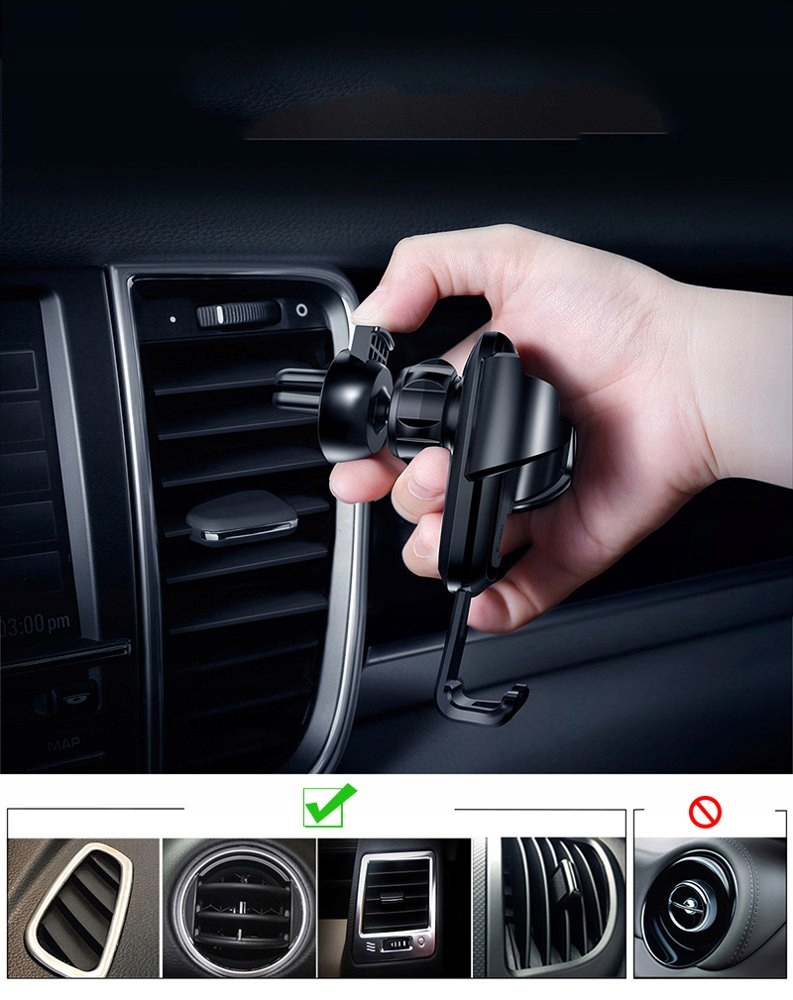 Гравітаційний власник телефону бренду baseus , встановлений на сітці вентиляції автомобіля.