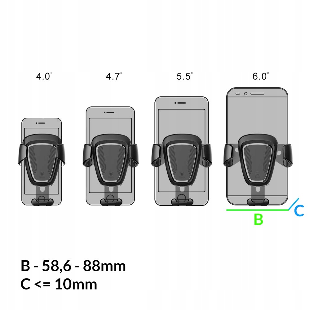 Автоматичні бічні затискачі, що кріпляться, спонтанно адаптуються до ширини телефону.