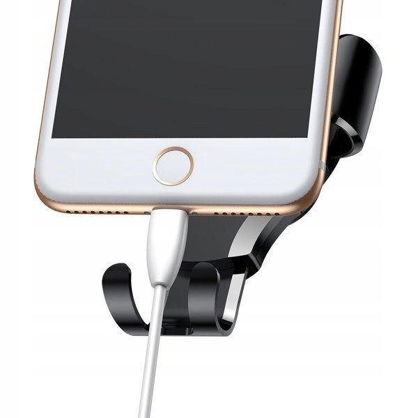 Тримач оснащений спеціальним отвором для кабелю зарядного пристрою, який дозволяє легко підключати телефон до джерела живлення, не змінюючи його положення в тримачі, забезпечуючи комфорт і безперебійну зарядку під час у подорожах.
