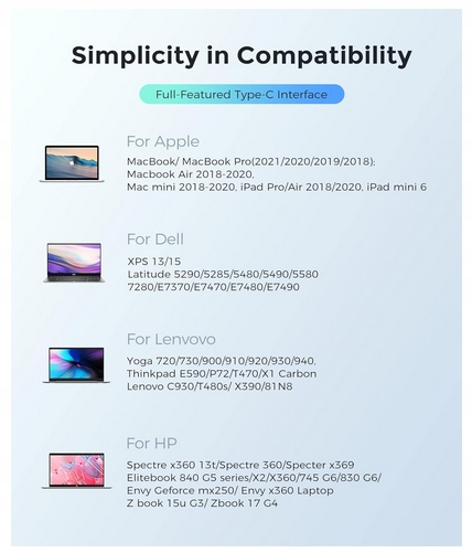 Усі порти в одному. Док-станція USB C дозволяє підключати майже всі ваші пристрої до одного пристрою. Док-станція з подвійним монітором підтримує всі пристрої та периферійні пристрої в стандарті 2*HDMI, 1*VGA, 1*3,5 мм аудіороз’єм, 1*USB-A 3.0 порт, 1*USB-C 3.0 порт, 4*USB -A2. 0, порт Інтернету RJ45 1000 Мбіт/с і порт USB-C із підтримкою зарядки 100 Вт PD