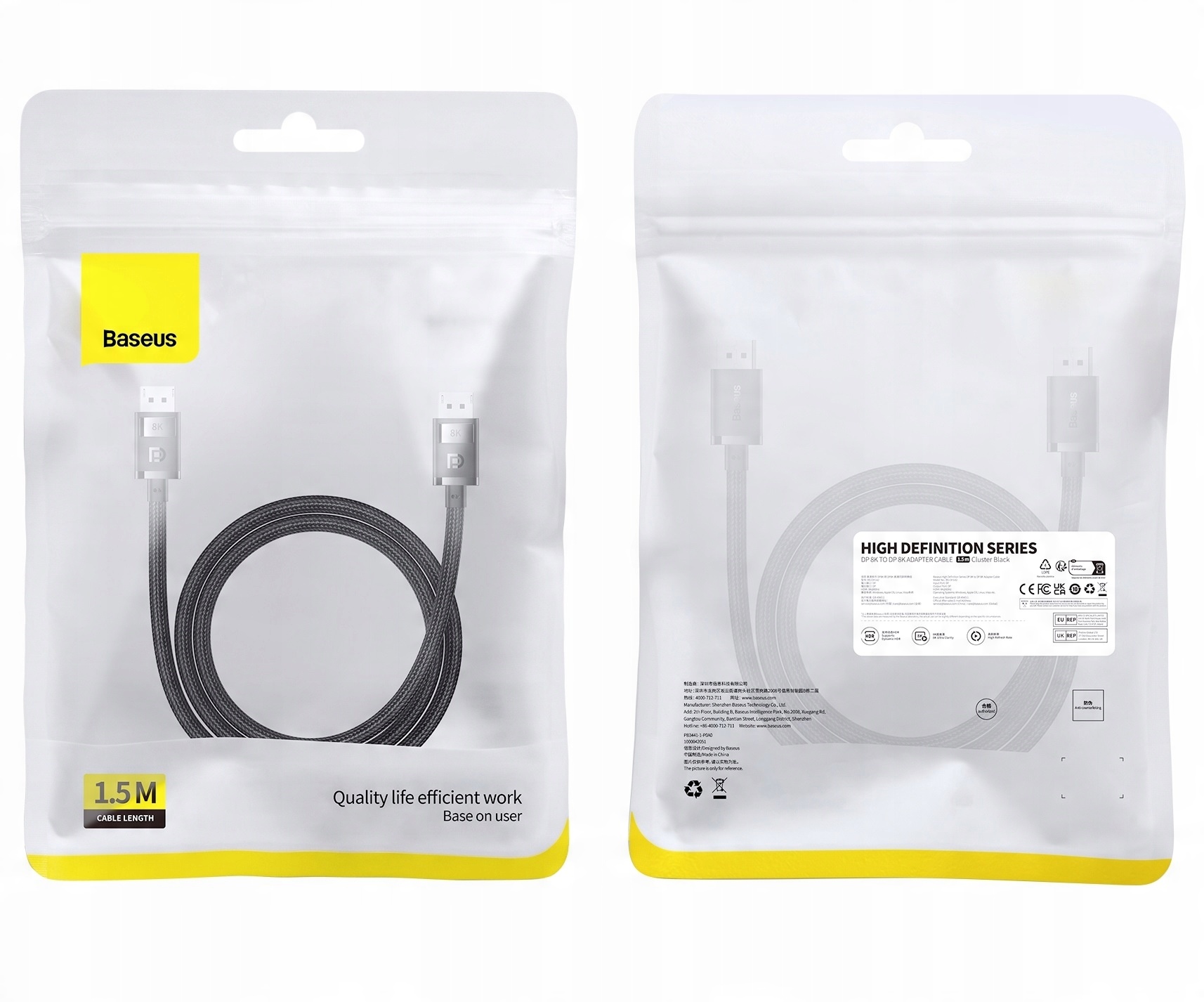 - Модель: Кабель-перехідник Baseus High Definition Series DP 8K – DP 8K Cluster Black 1,5 м