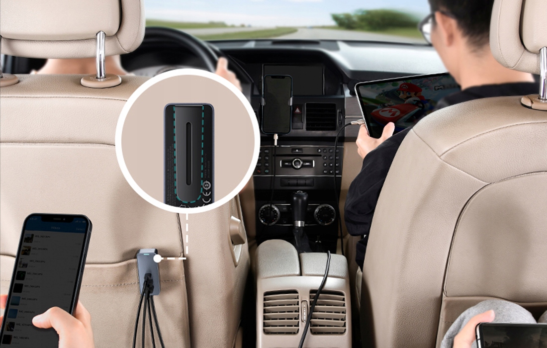 Вирушає в автомобільну подорож, незалежно від відстані, яка повинна Будьте подолані, варто обладнати себе джерелом живлення електронних пристроїв, таких як GPS -навігація, телефон або планшет. Однак зазвичай не тільки водій має необхідність заряджати своє електронне обладнання. Для забезпечення доступу до джерела живлення також пасажирів, оптимальним рішенням є оснащення вашого автомобіля зарядним пристроєм кількома розетками та довгим дротом. Це дозволить зручно з'єднати телефони та планшети до кожного пасажира. Багатоповерховий, швидкий BaseUs спільне зарядне пристрої працюватиме ідеально для цієї мети. Його загальна вихідна потужність досягає 120 Вт. 1,5 м розширювального шнура, зручно використовувати його в задніх сидіннях. Суцільний і довговічний - це забезпечить безпеку підключеного обладнання. Продукт сумісний з транспортними засобами від 12 В до 24 В. : Мульти -портний автомобільний зарядний пристрій