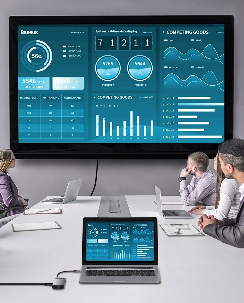 Baseus CAHUB-CW0G також забезпечує чудову якість зображення. Порт HDMI підтримує роздільну здатність 4K@30 Гц, що забезпечить вам незабутні враження. За допомогою адаптера ви можете підключити ноутбук до проектора, телевізора або інших великих екранів. Скористайтеся цією можливістю, щоб скопіювати зображення зі свого комп’ютера на великий дисплей і переглянути фільм, переглянути фотографії або провести презентацію з цікавими слайдами.