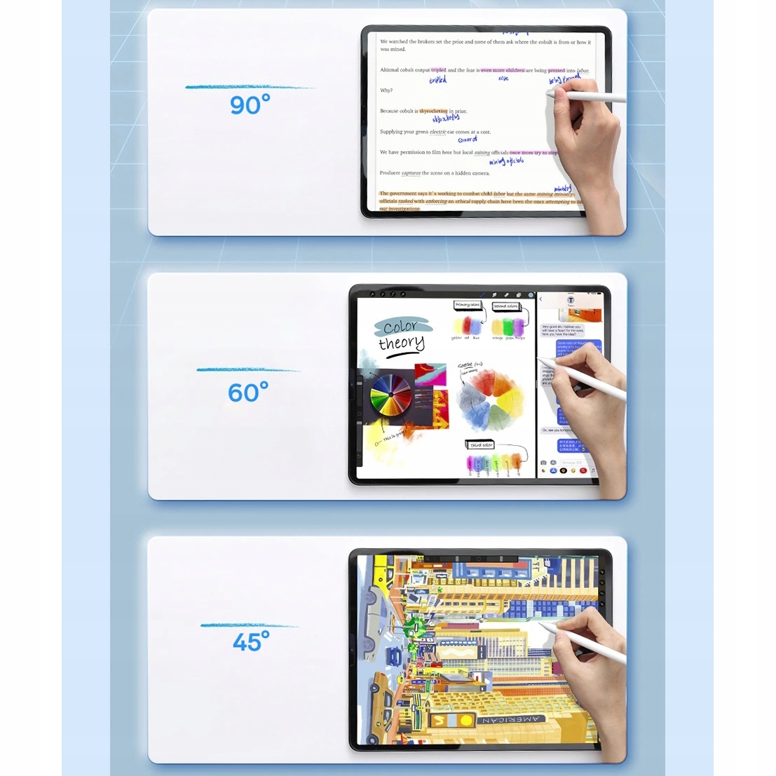 Стилус також дає змогу спиратися рукою на екран під час малювання та не дає екрану реєструвати вашу руку як робочий інструмент. Магнітний чохол забезпечує ідеальну посадку планшета та завжди під рукою.