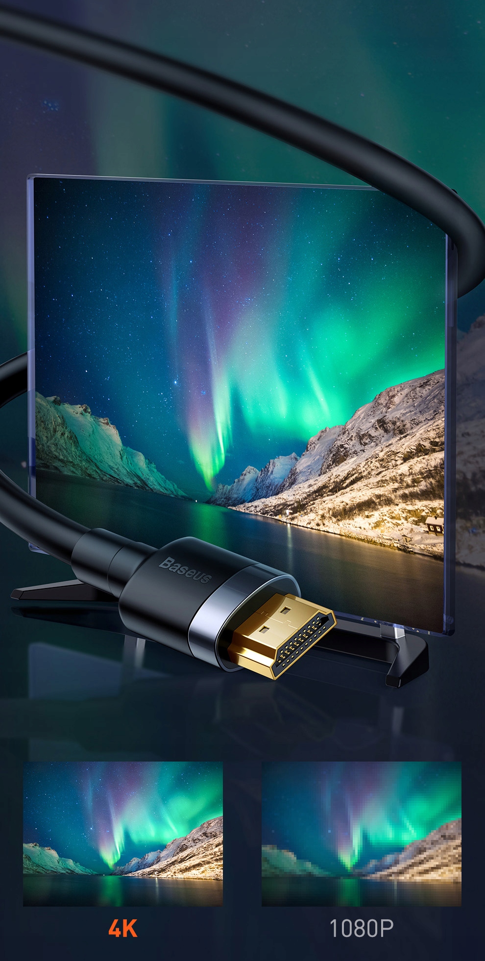 Кабель Baseus HDMI передає зображення в якості 4K, яка в чотири рази перевищує звичайний HD, забезпечуючи неймовірну якість навіть найдрібніших деталей.