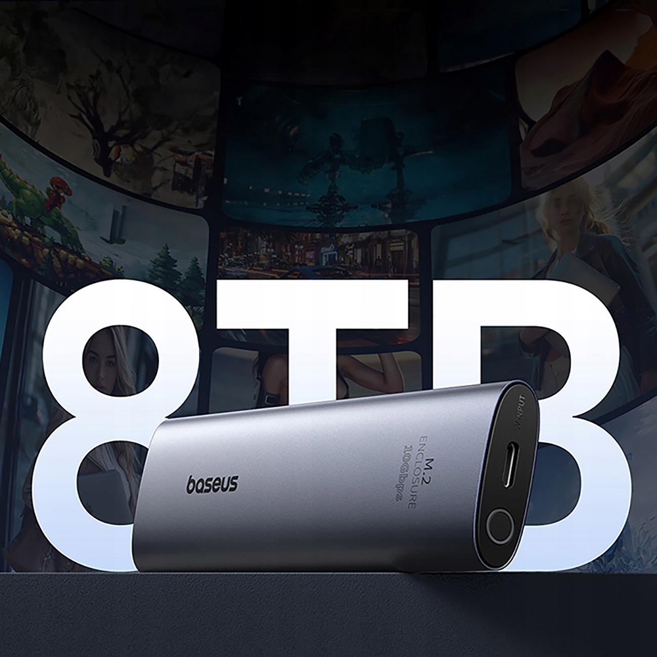Кишенька Baseus FlyJoy сумісна з накопичувачами SDD ємністю до 8 ТБ, що дає вам величезні можливості для зберігання. Уявіть собі, що ви можете зберігати приблизно 2,78 мільйона HD-фотографій, 260 000 пісень, 5400 фільмів або 8,4 мільйона документів! Усе це в компактному пристрої, який легко брати з собою всюди.