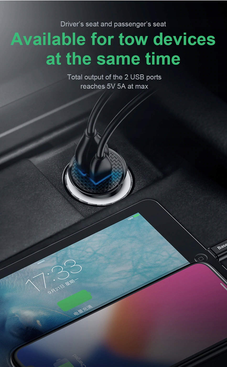 BASEUS SZYBKA MOCNA ŁADOWARKA SAMOCHODOWA USB USB-C TYP-C QC 4.0+ 5A 30W
