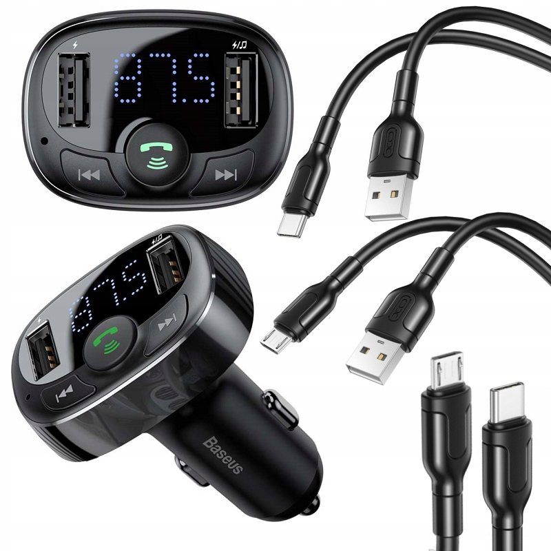 BASEUS TRANSMITER ŁADOWARKA 2xUSB FM BLUETOOTH CZYTNIK KART MICRO SD MP3 + 3 inne produkty