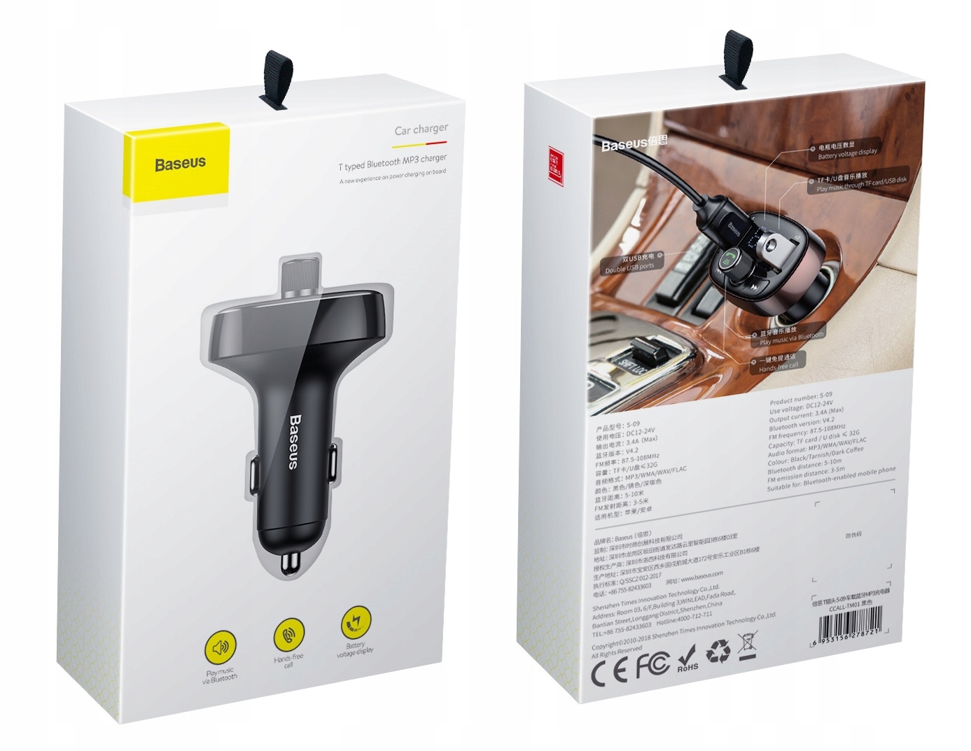 BASEUS FM-ПЕРЕДАВАТЕЛЬ BLUETOOTH АВТОМОБІЛЬНИЙ ЗАРЯДНИЙ ПРИСТРІЙ MP3 2x USB SD/TF 3.4A