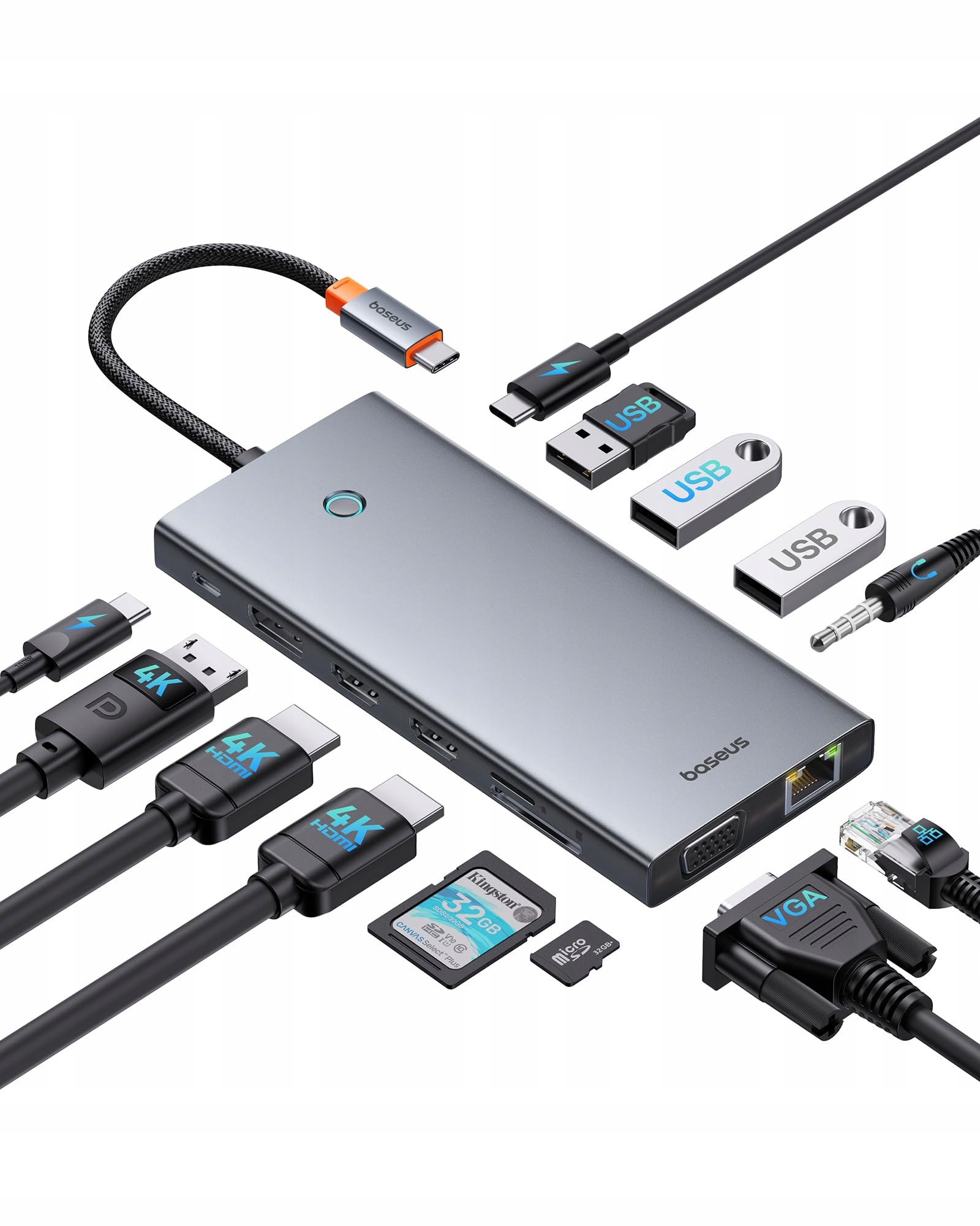 BaseUS USB-док-станція C 3 монітори, 13-W-1 USB C Hub