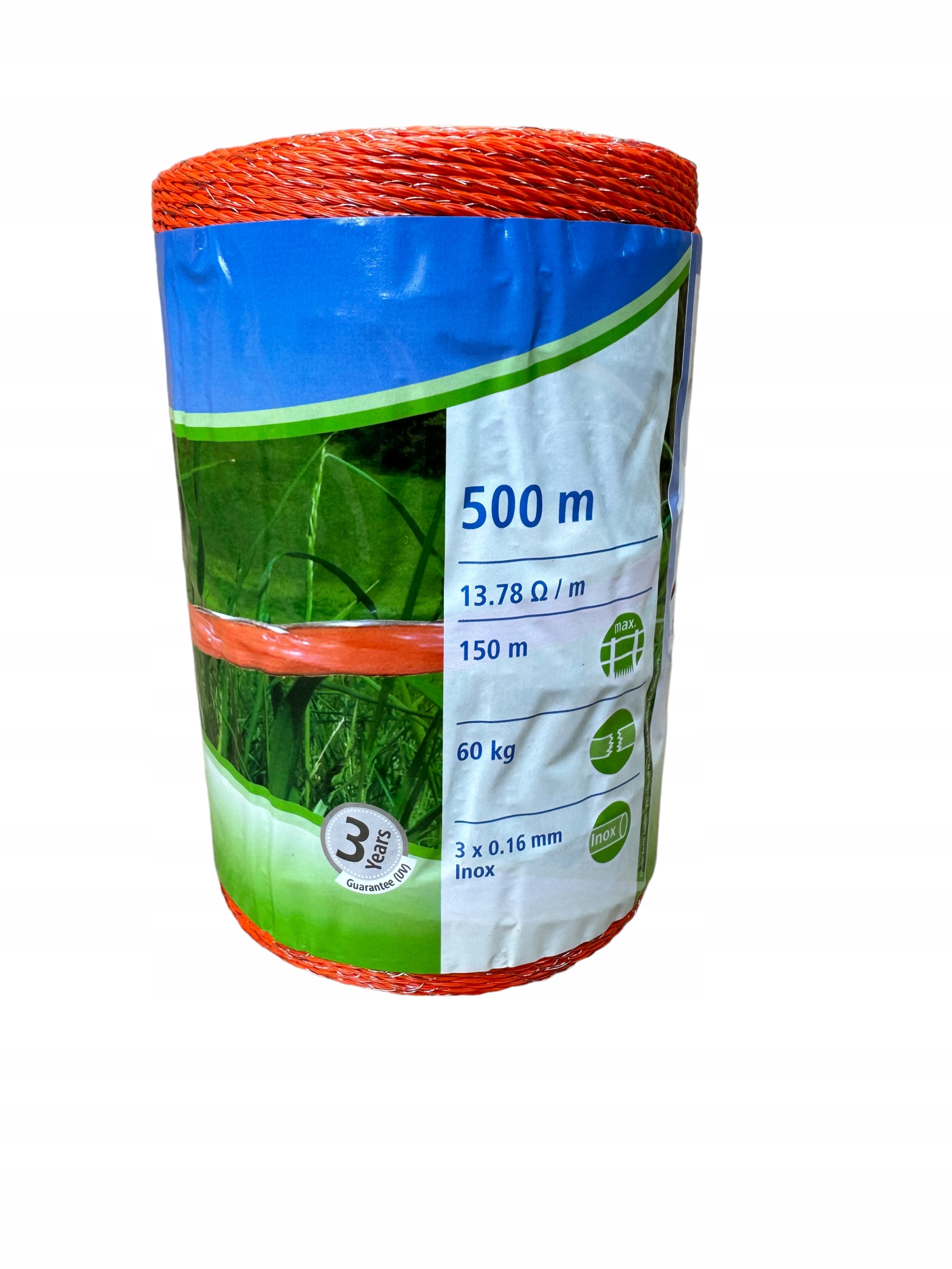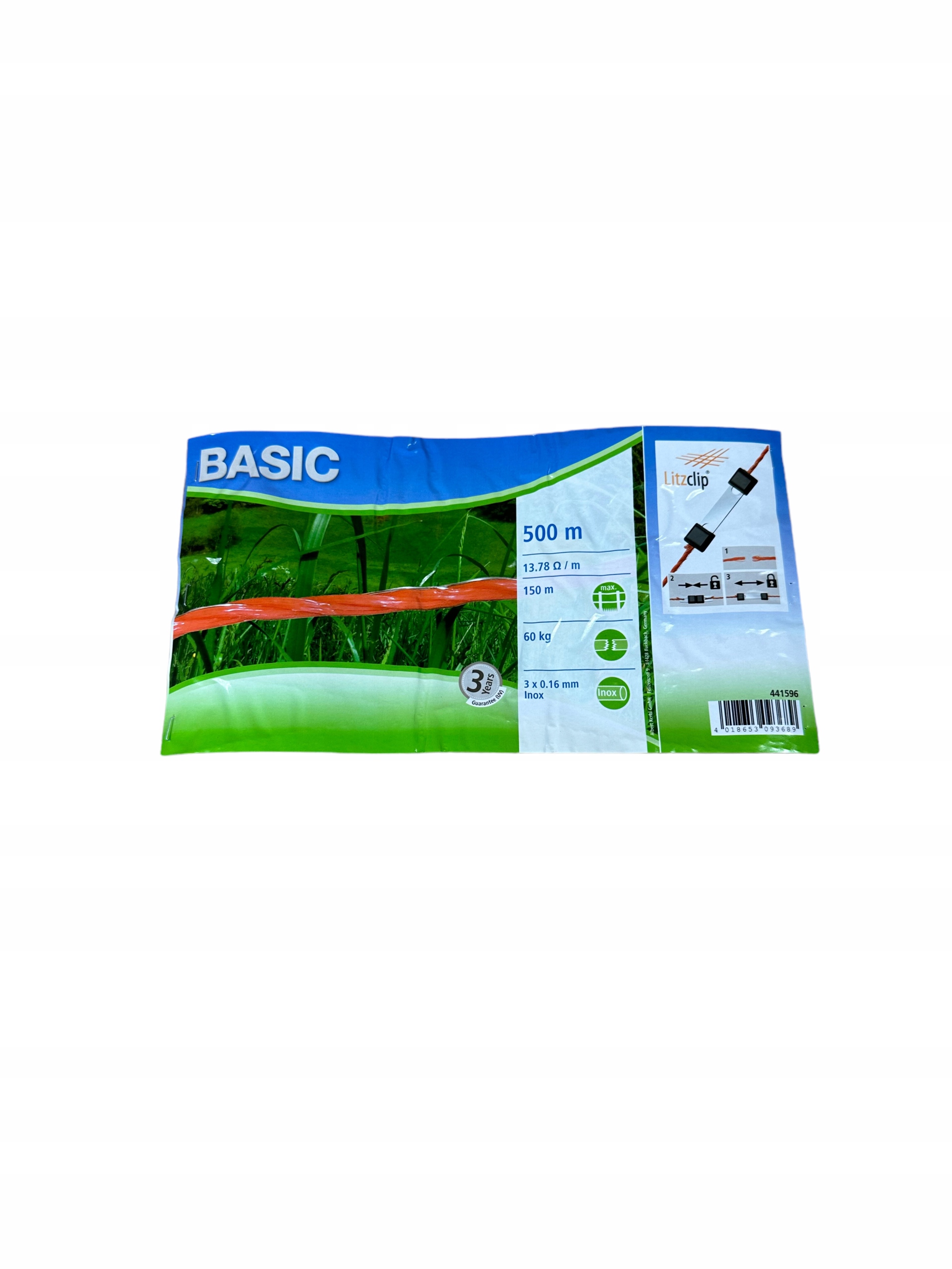 Основна оплетка довжиною 500 м, завдяки своєму кольору та дуже високим параметрам міцності на розрив 60 кг і дуже хорошому рівню опору 13,78 Ом на м, є дуже цінним компонентом електричних парканів. Використовується для огорожі посівів і пасовищ. Оплетку набагато легше скручувати, і вона більш помітна, ніж дріт. Його характерною рисою є дуже висока міцність і чудова видимість.