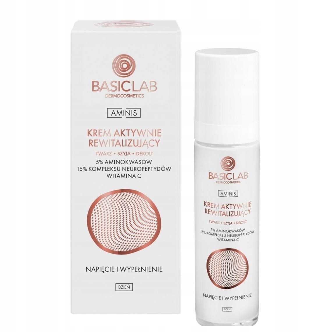 basiclab, активно оживляючи день до обличчя, шиї та розщеплення, 5% амінокислот, напруження та наповнення, 50 мл
