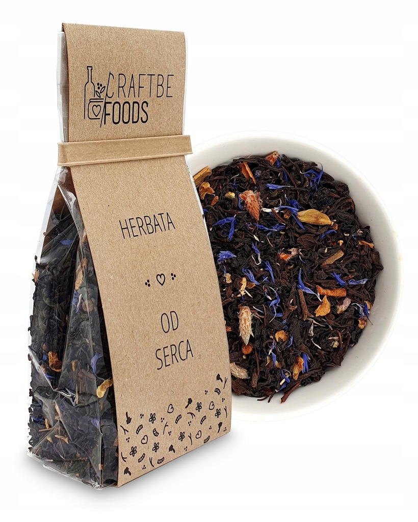 чай Craftbe Przy Kominku, чай Craftbe із серця, традиційний американський чорничний джем, заварку для чаю, сушений скибочки апельсина 2 шт., красива упаковка з натуральною начинкою, декорована джутовою ниткою з бантиком.