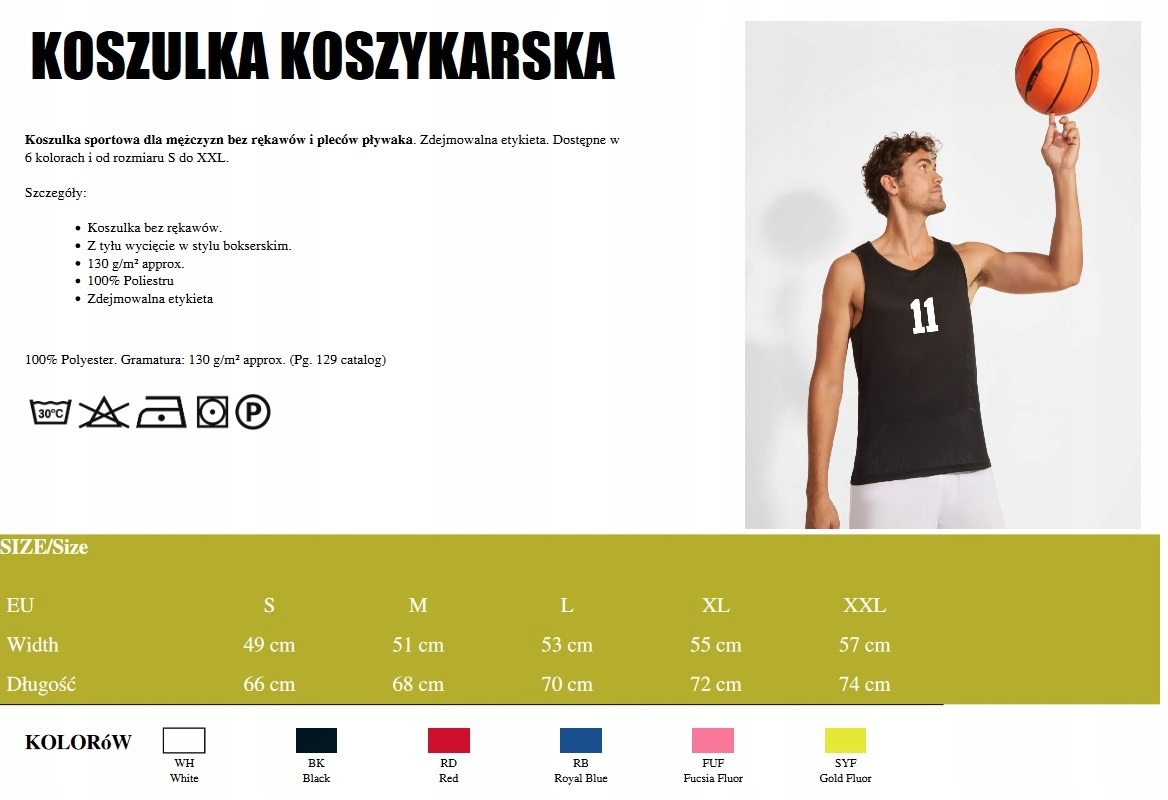- Кольори футболки: чорний, білий, синій, червоний, лимонний, рожевий