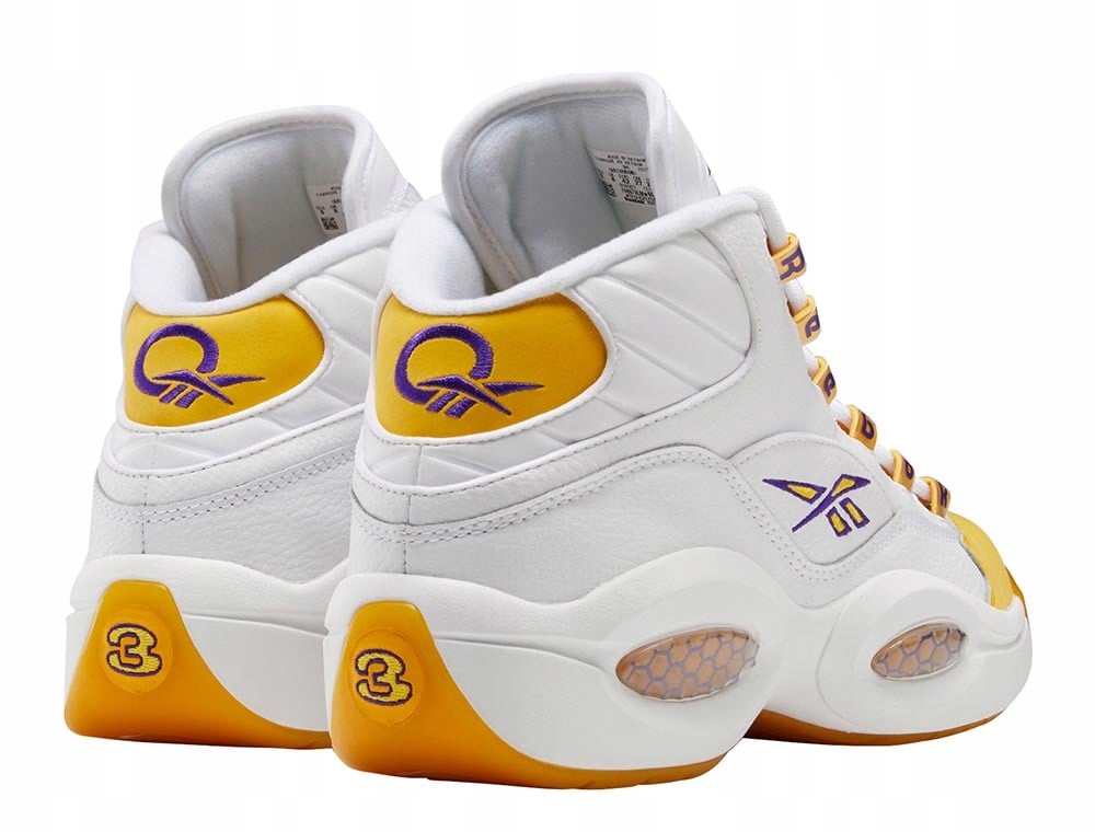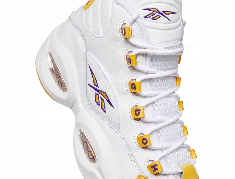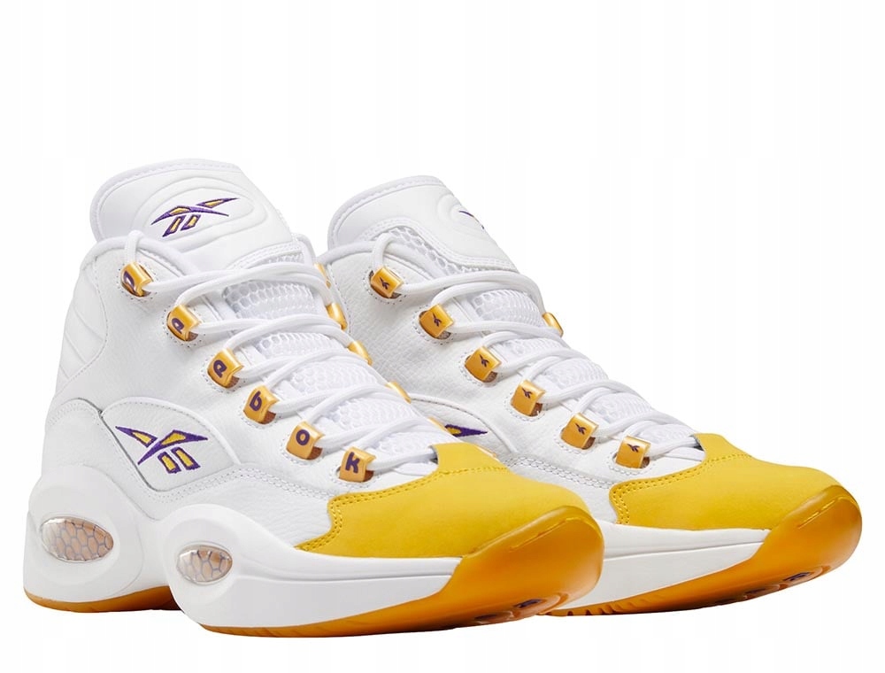 Взуття Reebok Question Mid "Yellow Toe" було створено для Аллена Айверсона, який навіть отримав нагороду найціннішого гравця НБА в 2001 році. Верх виконаний з м'якої шкіри, яка має контрастний колір на п'яті та носках. Підошва має флагманську систему амортизації Reebok, яка непереборно нагадує соти. Щоб додати характеру, бічний логотип був вишитий. Гумова підошва забезпечує підвищену міцність і оптимальне зчеплення.
