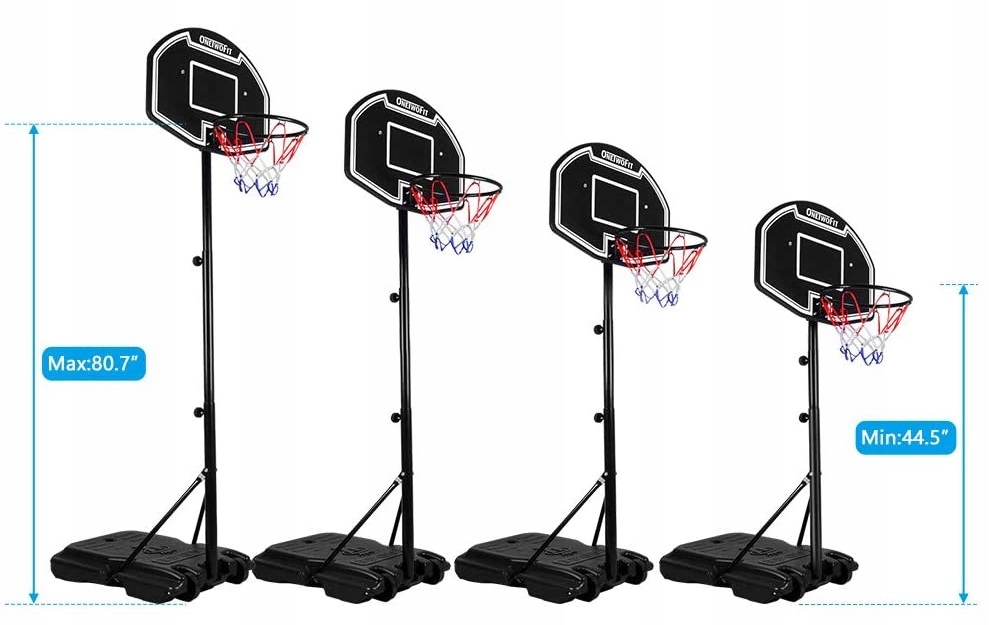 Розміри бази баскетбольного набору - 89 х 52 см і можуть бути заповнені водою або піском, щоб забезпечити хорошу стабільність та безпеку з кожними пострілами