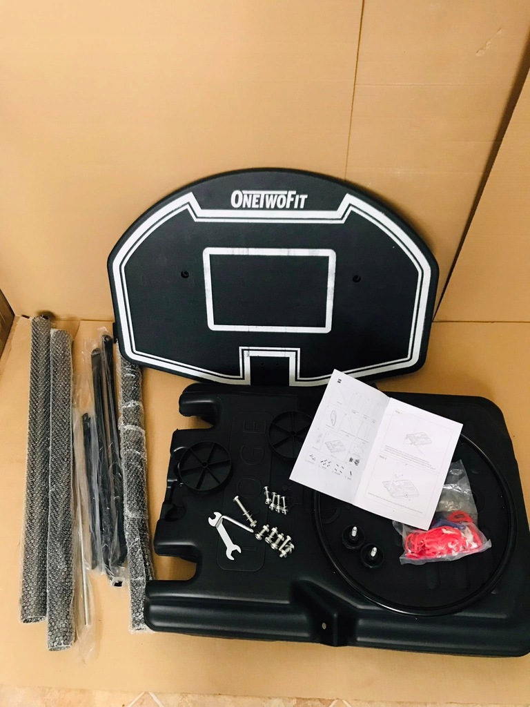 - Баскетбольна стійка з регульованою висотою виготовлена з нетоксичної, нержавіючої, лакованої круглої сталі, товщиною 3,8 см, а також твердого ПЕ. щит (поліетилен), тверда основа та нейлонова сітка.