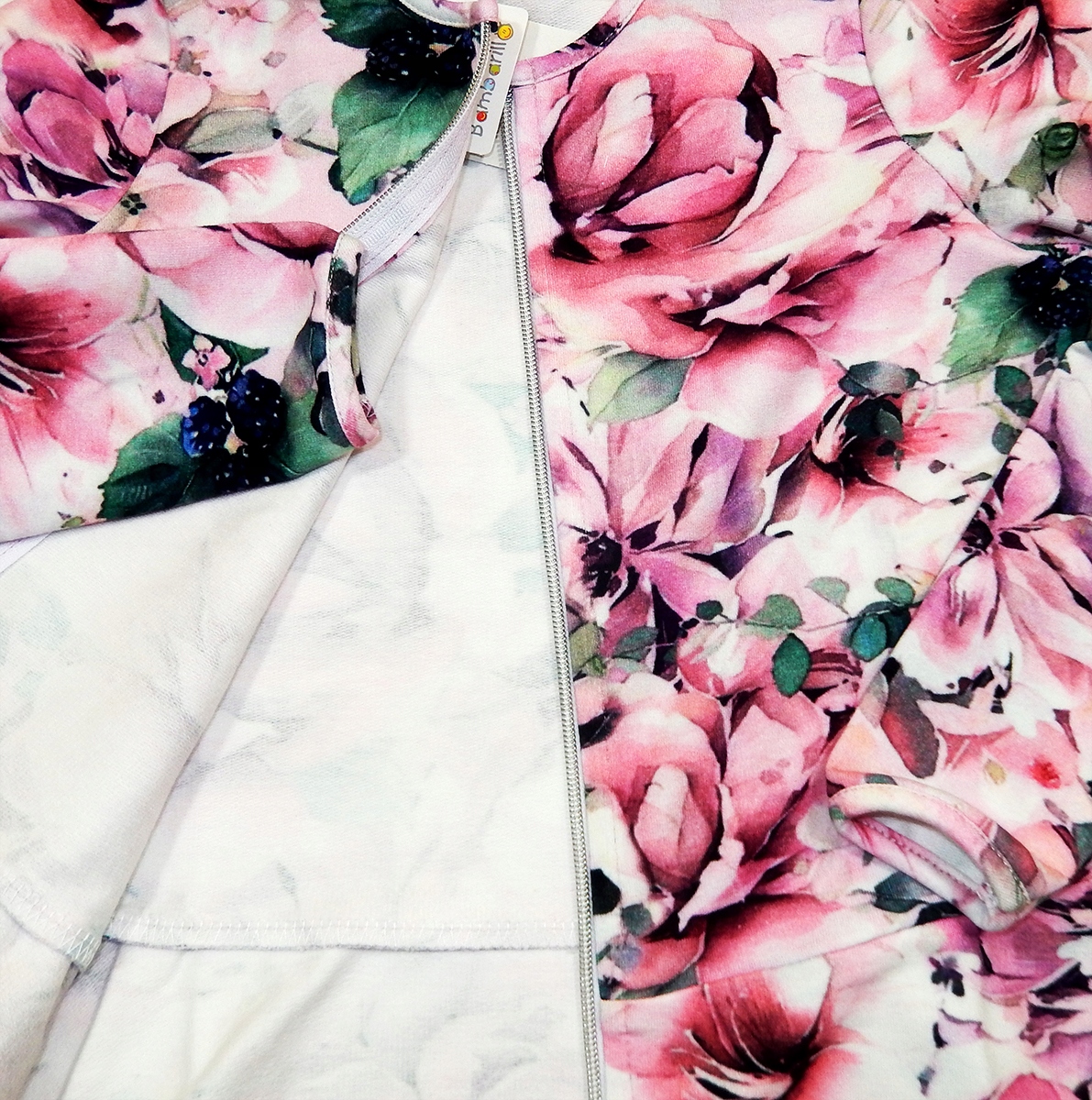Світшот застібається на блискавку. Низ оброблений воланом.