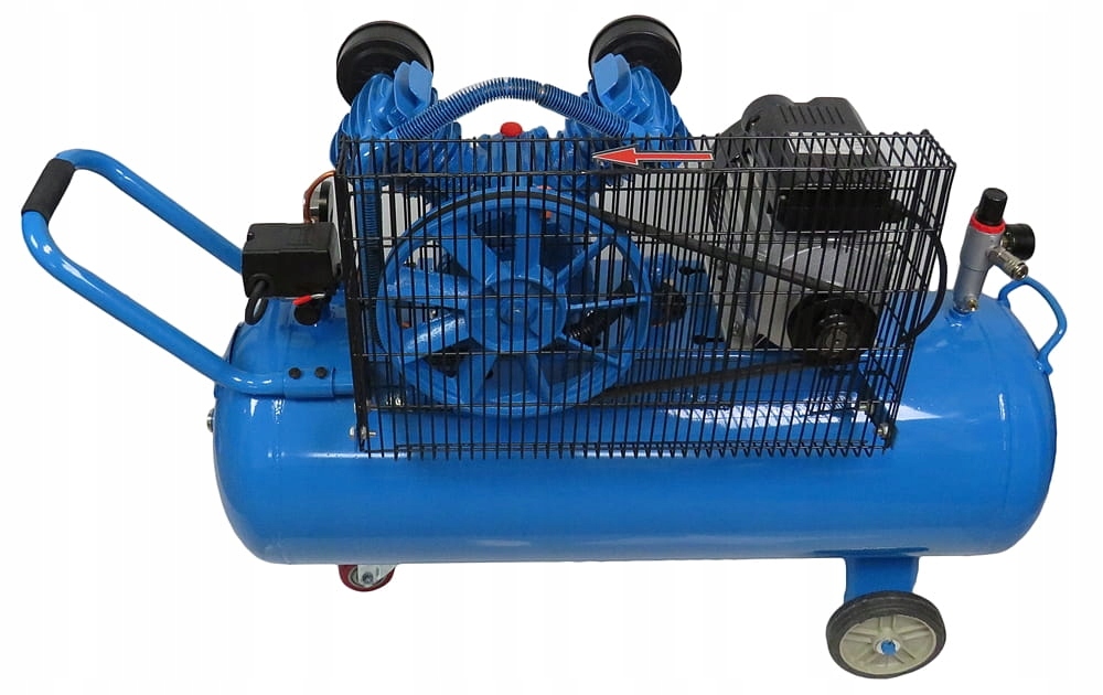 ✅Двопоршневий компресор об’ємом 100 л автоматично вимикається, коли циліндр наповнюється та включається після падіння тиску в балоні. Колеса полегшують транспортування та переміщення повітряного компресора.