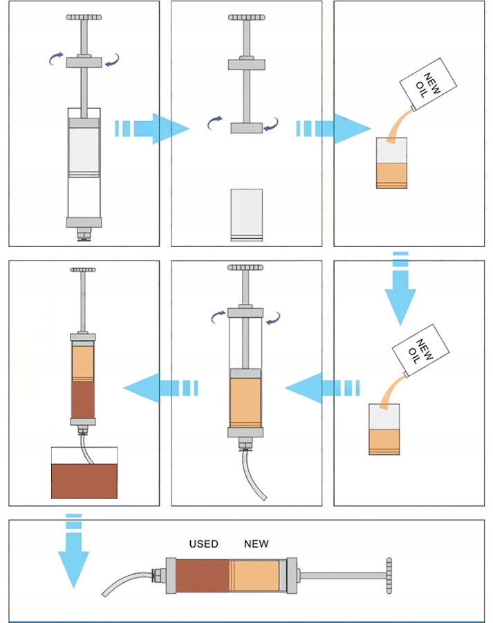 Його зручно використовувати для вилучення старого масла, легко контролювати та порівнювати якість масла.