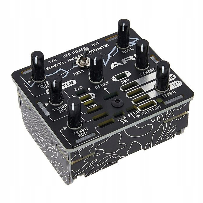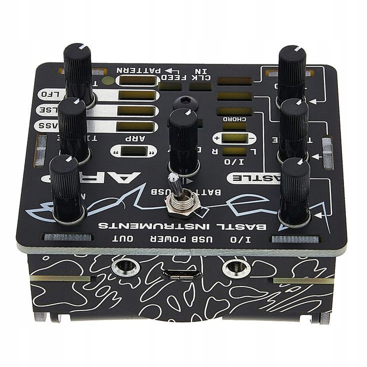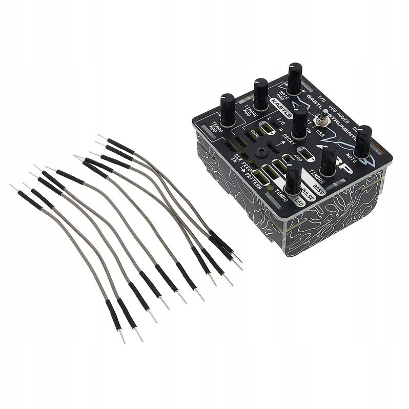 Bastl Instruments Kastle ARP- Модульний міні-синтезатор із секвенсором- Генератор синусоїдальної хвилі з квантувачем висоти та цифровим формувачем хвилі- Ручка керування нотами для вибору висоти та ручка керування акордами для вибору тризвукового акорду- Режим завантаження дозволяє встановити основну ноту та тонкий- настройка- Керування тембром (форматор хвилі) з модуляційним входом і аттенюатором- Регульована огинаюча затухання- Окремі виходи для сигналів Arp і Bass- Внутрішній LFO з трикутною та імпульсною формами хвилі- Вхід годинника та патч-точки для керування внутрішнім секвенсором/регістром зсуву- патч-точки для підключення до зовнішнього пристрою/виходу для навушників (роз'єм 3,5 мм) - живлення від батарейок (x3 типу AA) або порту Micro USB (батареї та блок живлення не входять до комплекту) - розміри (ШxГxВ): 70 x 60 x 50 мм - включаючи 10 патч-кабелі