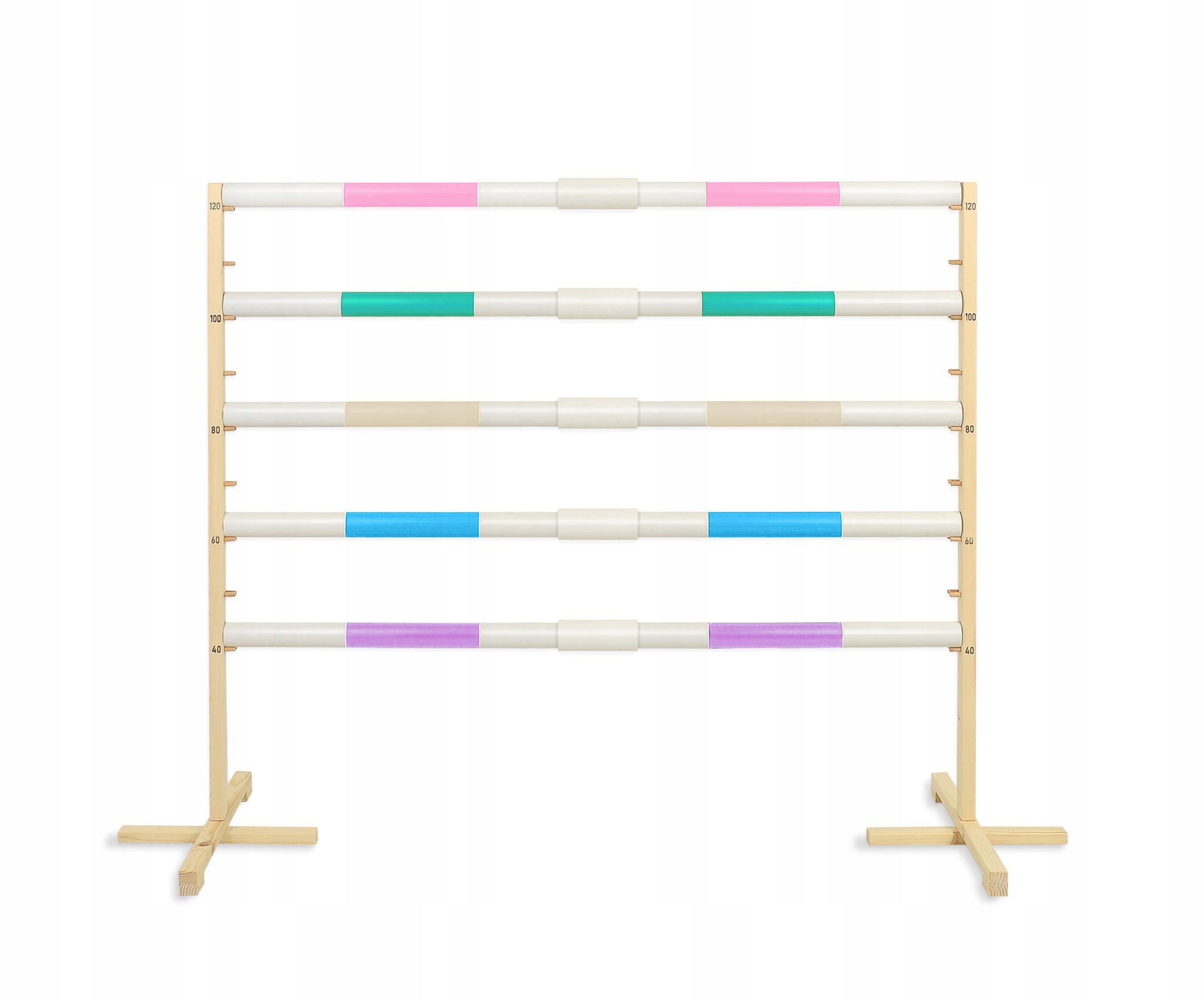 4 Він має стабільні ноги, завдяки якому він впевнено стоїть. Бруки пластикові, легкі, доступні в декількох кольорах.Перешкода можна встановити на висоті від 40 см до 120 см, залежно від зростання дитини та моторних можливостей. Бар був розроблений таким чином, щоб він падав під час стопи. Неможливо, щоб дитина впала під час стрибка.