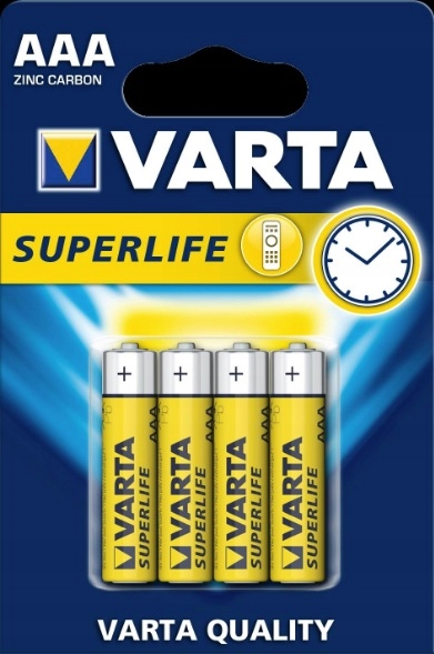 Надійні та доступні — лінійка цинково-вуглецевих батарей VARTA Superlife. Ідеальний вибір для малопотужних пристроїв, таких як настінні годинники, будильники або пульти дистанційного керування.