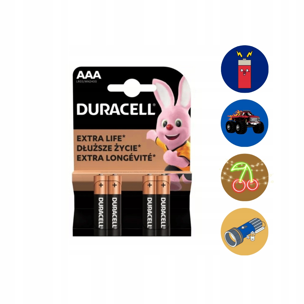 - Термін служби: Батарейки AAA (R3) DURACELL характеризуються надзвичайною тривалий термін служби , що означає, що вони забезпечують надійне живлення протягом тривалого часу.