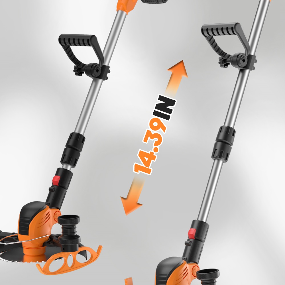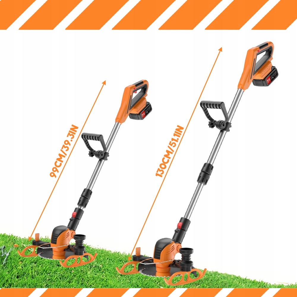 ▶️Ріжуча головка регулюється від 0° до 90°, а довжина ручки регулюється від 39,3 до 51,1 дюйма,забезпечуючи легке пристосування до росту та косіння.