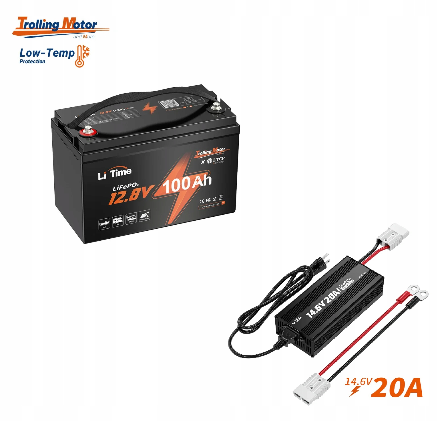 Батарея Litime 12V 100Ah Тролінг -двигун + LITIME 12V Зарядник (14,6 В) 2