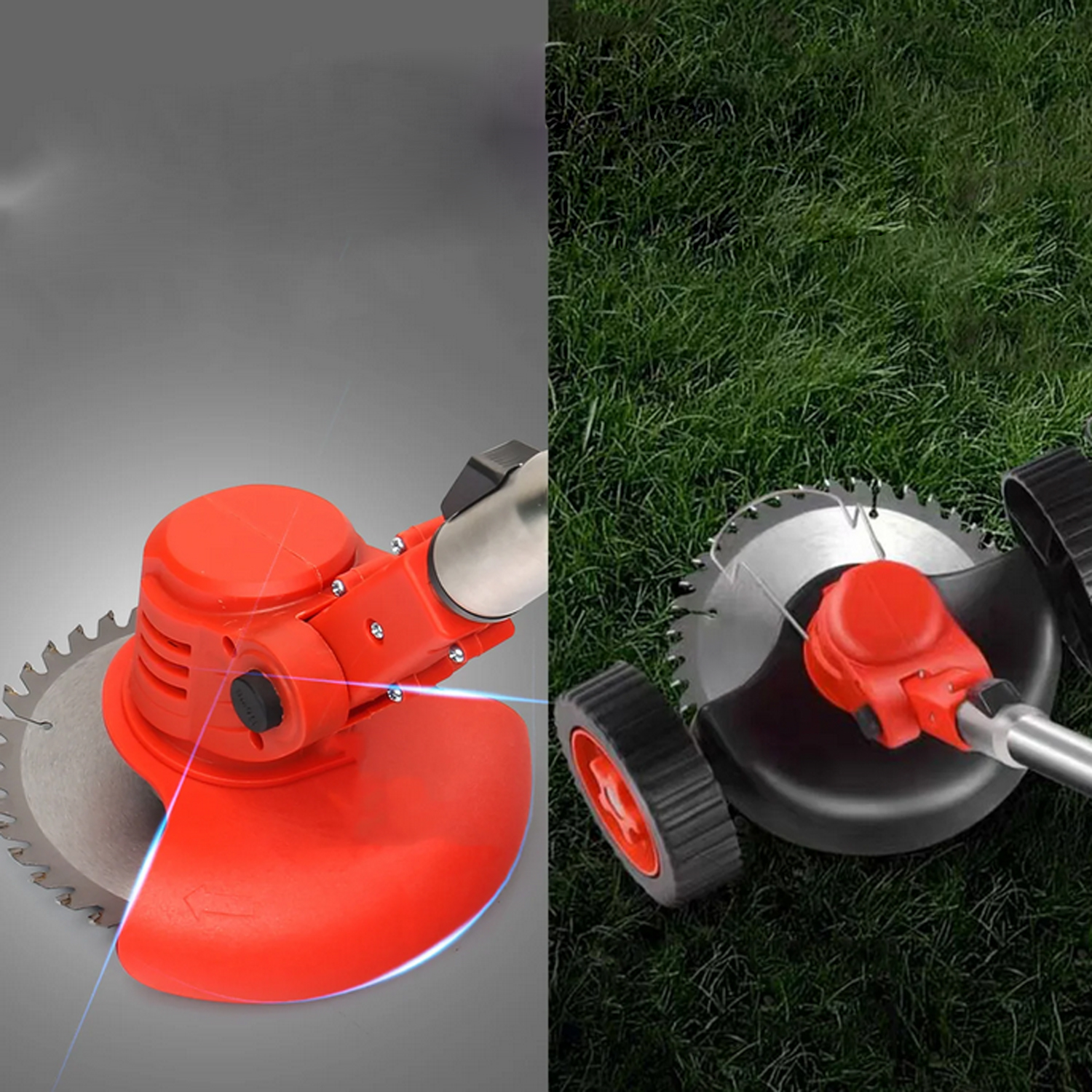 Акумуляторний тример з різними лезами для різних потреб у видаленні бур’янів. Пластикове лезо, підходить для стрижки трави; Металевий ніж, підходить для швидкої стрижки газону, бур'янів, дрібних кущів; Кругла пила, велика ріжуча здатність, підходить для зрізання товстих гілок кущів.