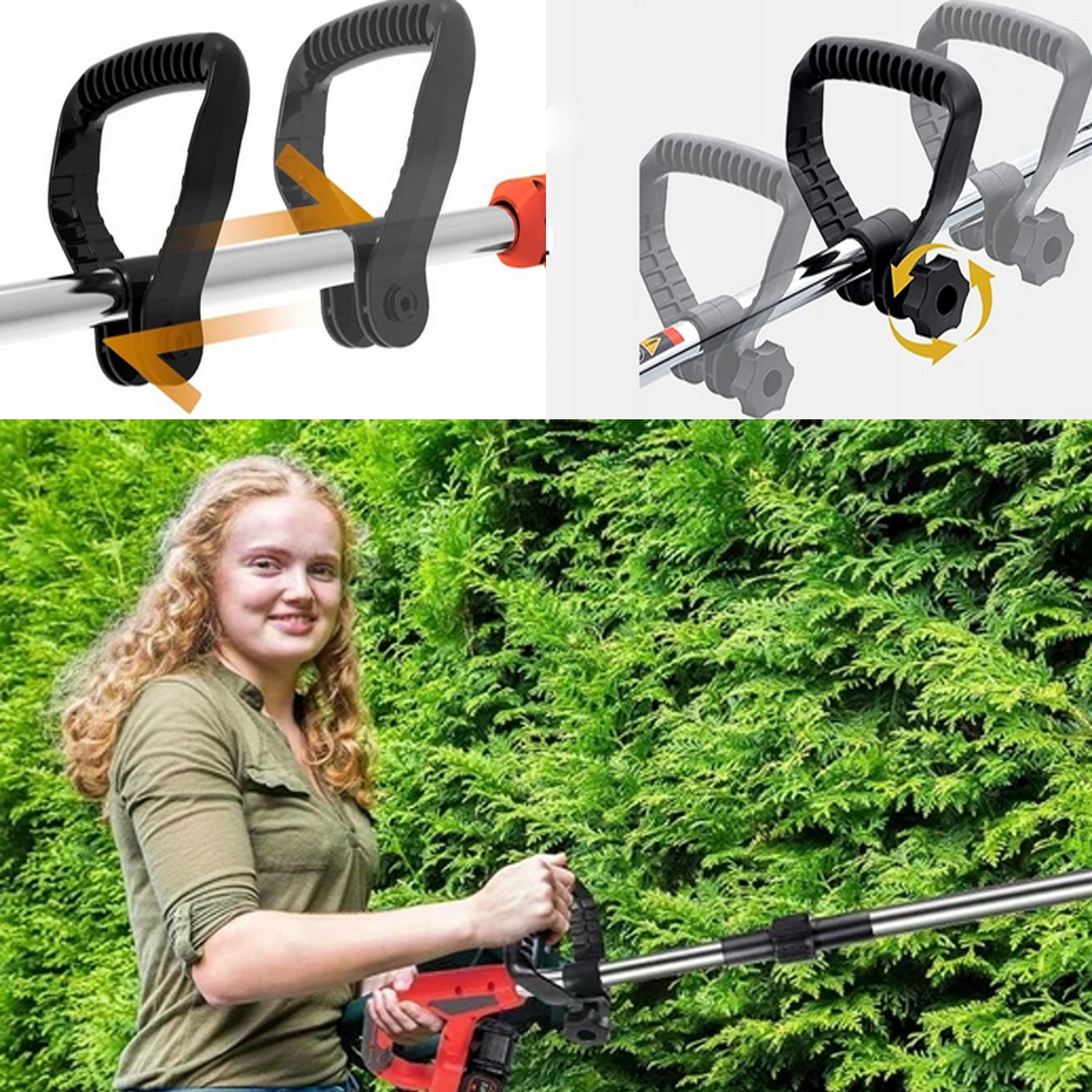 Довжина телескопічної жердини травоїда від 102 см до 130 см, призначена для людей різного зросту без згинання під час підстригання. Конструкція ручки тримера відповідає ергономіці, забезпечуючи зручне та збалансоване керування. Він важить лише 1,6 кг, а також має знімні ковзні опорні колеса, що робить підстригання трави таким же легким, як ходьба.