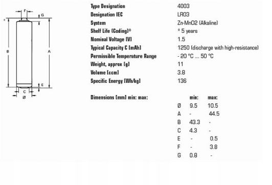 - Електрохімічний система: лужно-марганцевий акумулятор ZN/MN02