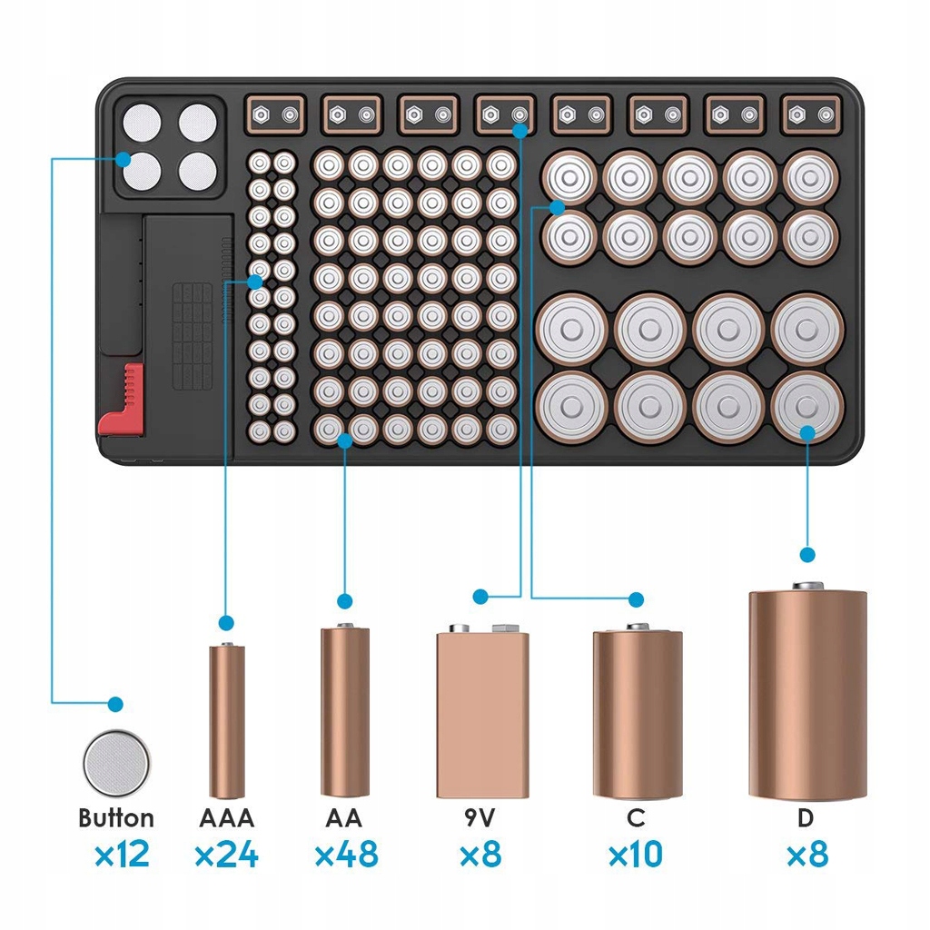 Органайзер для батарейок із тестером, 98 або 72 відділення на вибір.