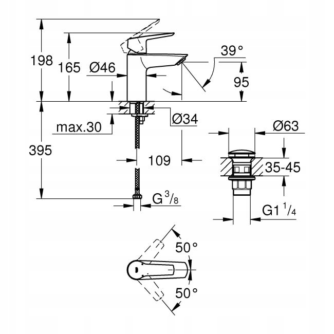 Хромований змішувач для умивальника Grohe Start Quickfix S Click-Clack з латуні стане в нагоді в кожній ванній кімнаті. Підходить для маленьких умивальників. Він був обладнаний внутрішніми водопровідними каналами. Завдяки їм відсутній контакт зі свинцем і нікелем, тому він безпечний у використанні. Технологія EcoJoy означає, що споживання води значно менше, ніж у класичних змішувачах – менше шести літрів на хвилину. Хромований змішувач для умивальника Grohe Start Quickfix S клік-клак стійкий до іржі, подряпин і механічних пошкоджень. З нього можна легко видалити весь бруд і вапняний наліт. У набір входить інструмент QuickTool, який буде використовуватися для швидкої установки і можливого обслуговування акумулятора. Перевірте також інші змішувачі Grohe Start.