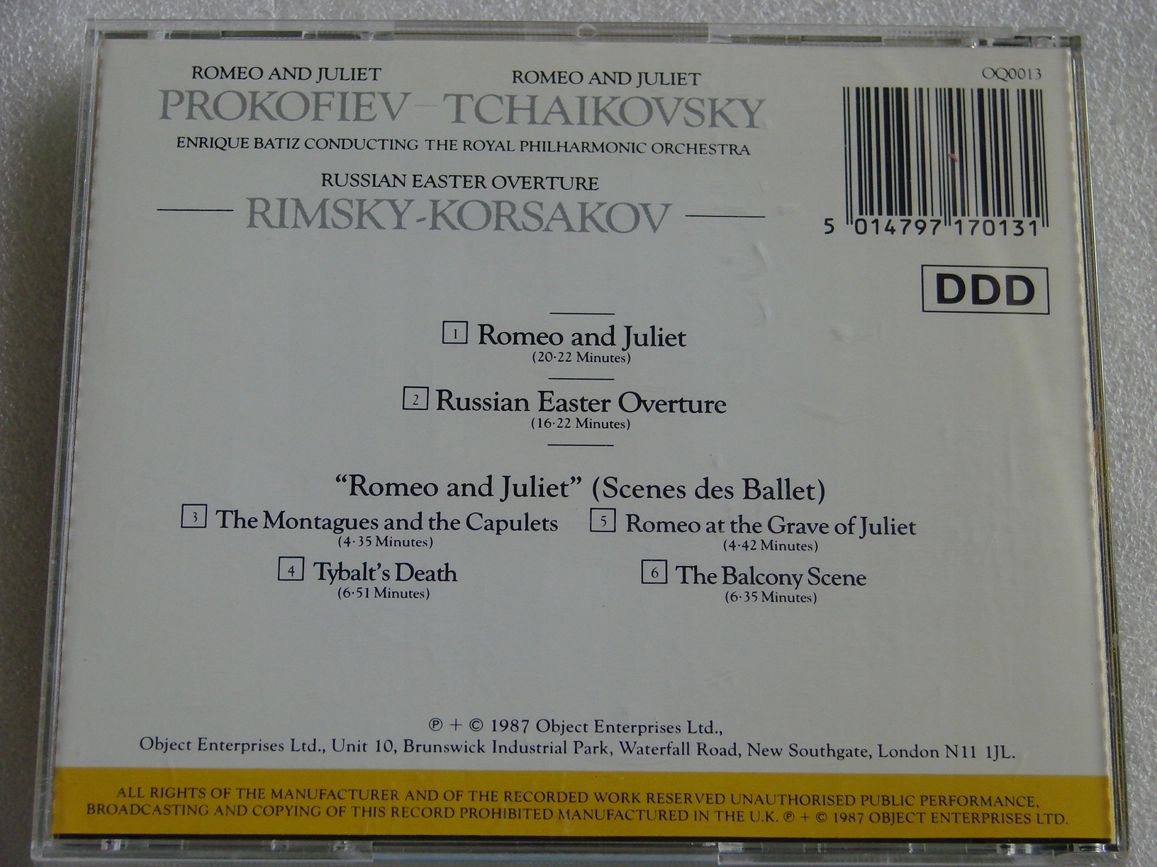 Batiz RPO - Прокоф'єв Чайковський Рімський -Корсаков - Ромео та Джульєтська компакт -диск '87