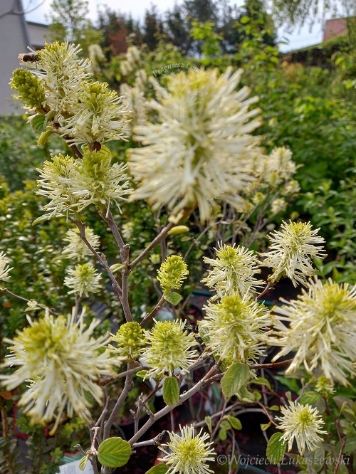 Mount Airy Hybrid Hybrid - Fothergilla X Intermedia (контейнер C2) Дуже рідкісний, повільний стравний кущ (досягаючи висоти 2 м), але цінний завдяки надзвичайним декоративним якостям та високій стійкості до морозу.