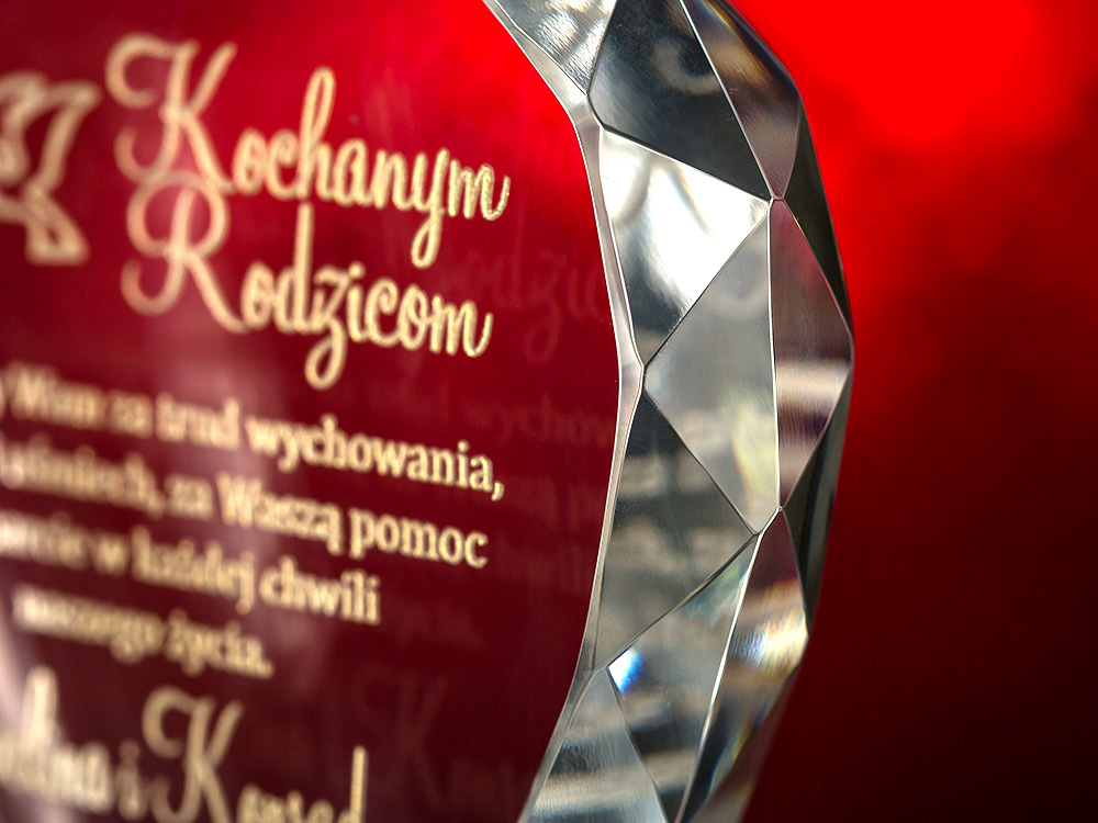 Красива подяка виготовлена за допомогою технології лазерного гравіювання безпосередньо на предметі. Статуетка CRYSTAL виглядає чудово завдяки інноваційній формі, а завдяки вирізам створює незабутнє естетичне враження. Встановлений на міцну основу з такого ж матеріалу, які міцно з'єднані між собою, він неодмінно запам'ятається одержувачу. Ви більше ніде не знайдете такої високої якості. Крім того, гравіювання наноситься майстром вручну і дуже акуратно спеціальною фарбою. Позолота/срібло переливається на світлі та дає дивовижний ефект. До всього доповнює красивий бордовий чохол з бордовим атласом, в якому статуетка виглядає ще красивіше, а позолота виділяється на тлі чохла. Можу зробити для вас - ПОДАРУНОК НА БУДЬ-ЯКИЙ НАВОД (весілля, гостини, хрещення, причастя, день народження, вісімнадцяти іменини, ювілей, річниця весілля, день матері та батька, день дідуся та бабусі, день Святого Валентина, день вчителя, тощо). b>