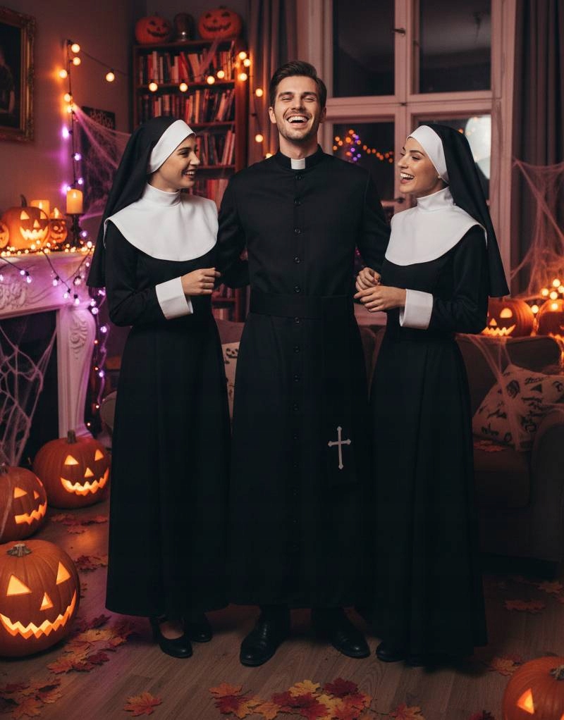 Хеллоуїн 2025, маска кульки, карнавал, видовище, кабаре або тематичний вечір у групі друзів - класична Кассока з кольором потрапить у кожен сценарій . Просто додайте реквізит (наприклад, книга, розарій, окуляри - не включайте набір ) і у вас є готова роль.