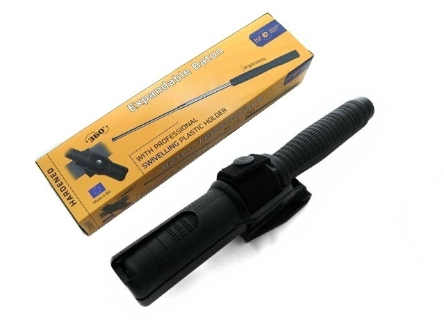 Телескопічний кийок складний, гартований, від чеської компанії ESP, довжиною 23" і в комплекті з обертовою на 360° кобурою. Найпопулярніша модель кийка з дальністю дії, призначена для самозахисту, для навчання бойовим мистецтвам і для професійного використання уніформованими службами та службами безпеки. Палицю було загартовано до твердості від 40 до 50 HRC, що забезпечує дуже високу міцність навіть при інтенсивному використанні.